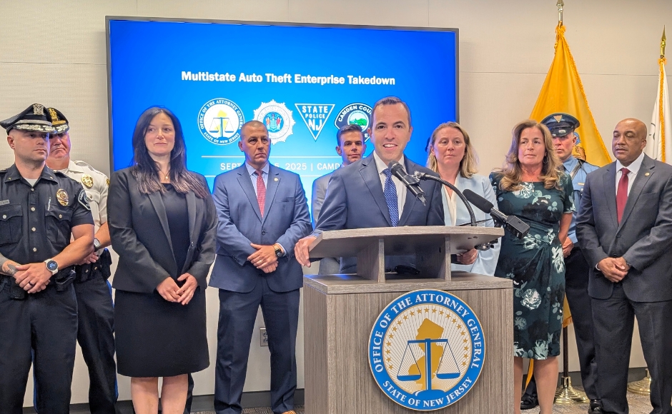 NJ Attorney General Matt Platkin announces charges in a multistate vehicle theft ring. Credit: Matt Skoufalos.