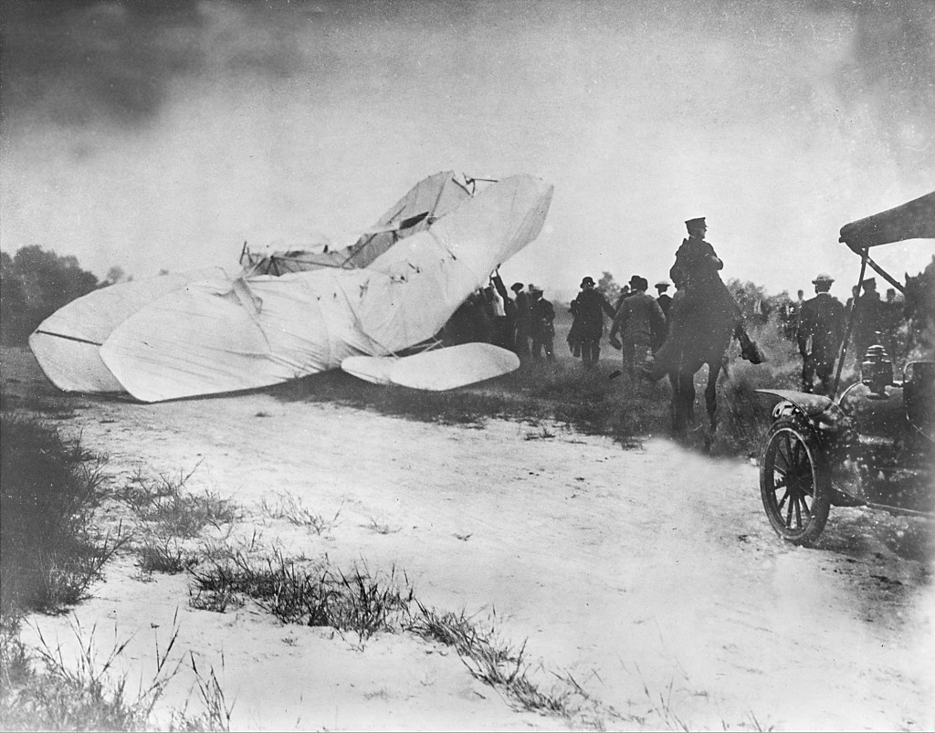 On Sept. 17, 1908, Lt. Thomas E. Selfridge of the U.S. Army Signal Corps became the first person to die in the crash of a powered aircraft, the Wright Flyer, at Fort Myer, Virginia, just outside Washington, D.C. The pilot, Orville Wright, was seriously injured but survived.