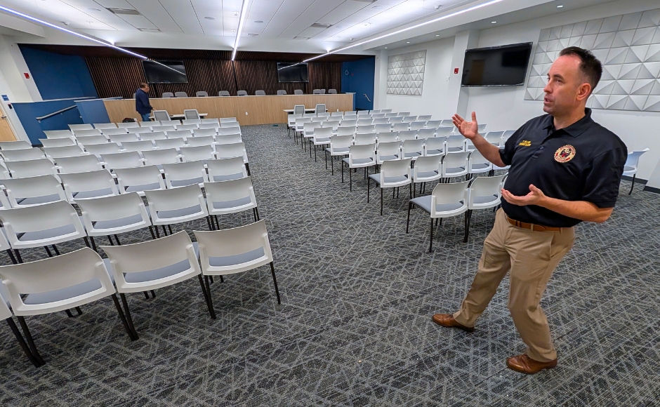 Pennsauken Township Administrator Tim Killion in the new meeting space for the municipal government. Credit: Matt Skoufalos.