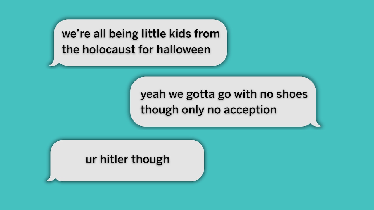 Screenshots from Snapchat show the remarks of at least three Manalapan High School students discussing Halloween plans to dress up as Holocaust victims for Halloween with one of them planning on portraying Adolf Hitler.