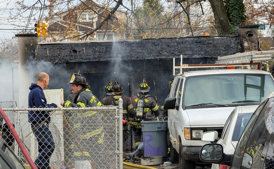 Firefighters extinguish a garage fire in the West Collingswood Extension. Credit: Matt Skoufalos.
