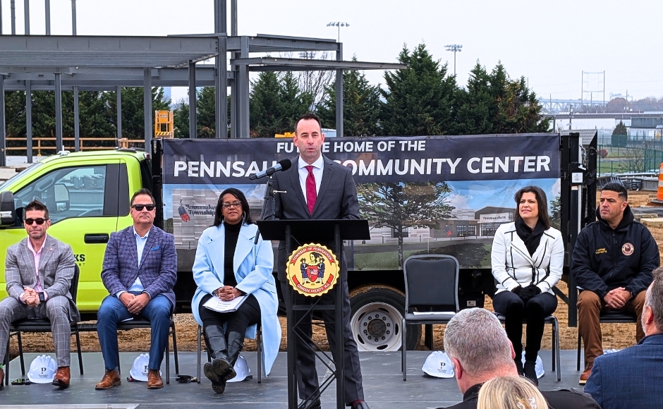 Pennsauken Township Administrator Tim Killion speaks at the groundbreaking of the township community center. Credit: Matt Skoufalos.