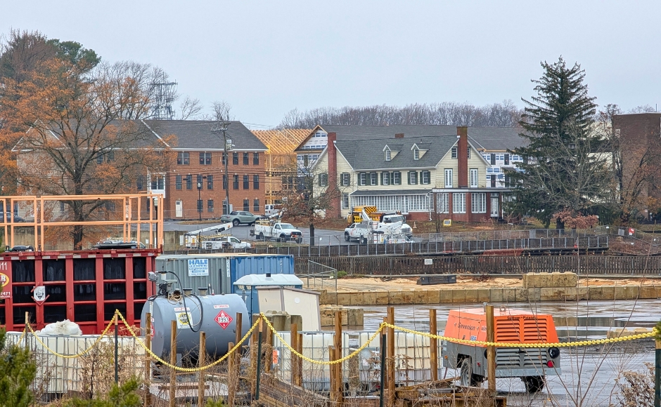 Cleanup of the former Sherwin Williams site in Gibbsboro will support redevelopment of the historic Lucas Homestead, seen in the background here. Credit: Matt Skoufalos.