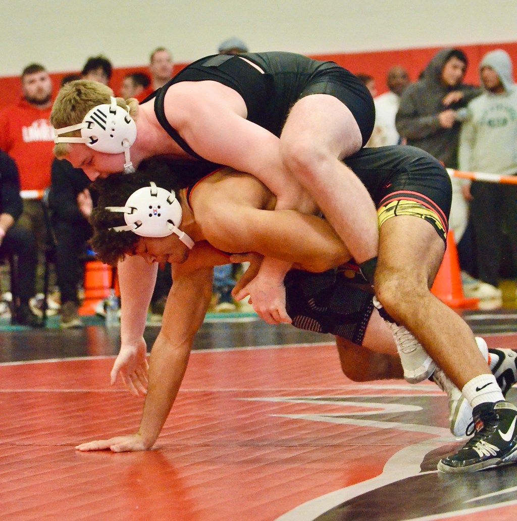 Hopewell also got pins in the first period from Jan Rahmani (106), Parker Humphrey (126), Max Pollara (157) and Ethan Barker (175). Steven Ham remained undefeated for Lawrence with a pin at 132 pounds.