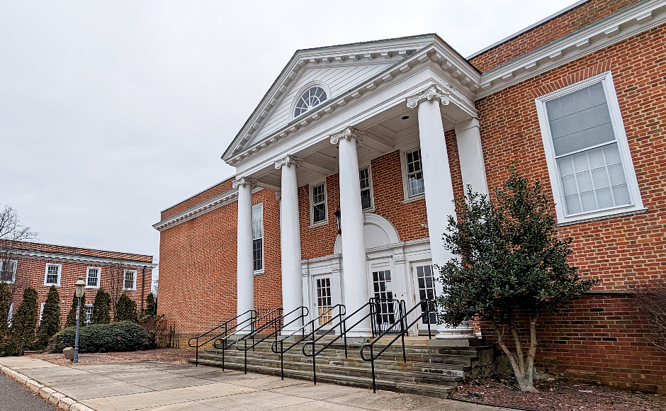 Entrance to the former Kingsway Learning Center in Haddonfield (2023). Credit: Matt Skoufalos.