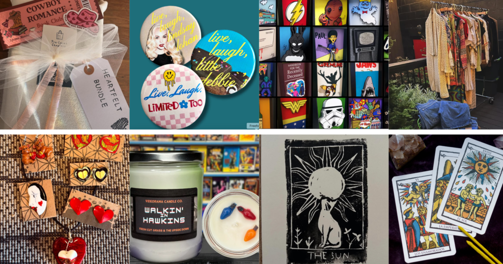 For those drawn to the mystical and expressive, Cosmic Caravan offers tarot and decks, Fae Made Magic brings witch hats and prints, and Spirituallywired1211 showcases handcrafted jewelry with spiritual flair.